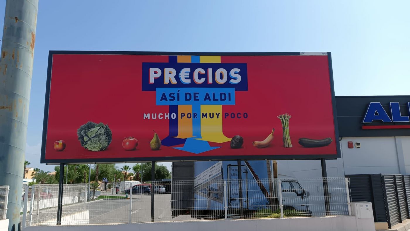 ALDI, una de las empresas líderes en toda Europa en alimentación ha confiado nuevamente en Airos Comunicación para el cambio de rotulación de sus vallas y monopostes, aplicando los nuevos horarios en las tiendas.
