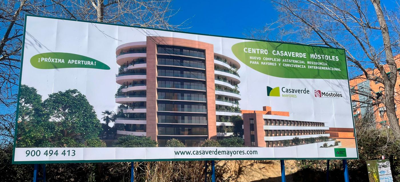 Hemos instalado una valla de gran formato para Centro Casa Verde en Móstoles, un complejo asistencial y residencia para mayores. Se trata de una 12 x 4 m en el centro de la población.